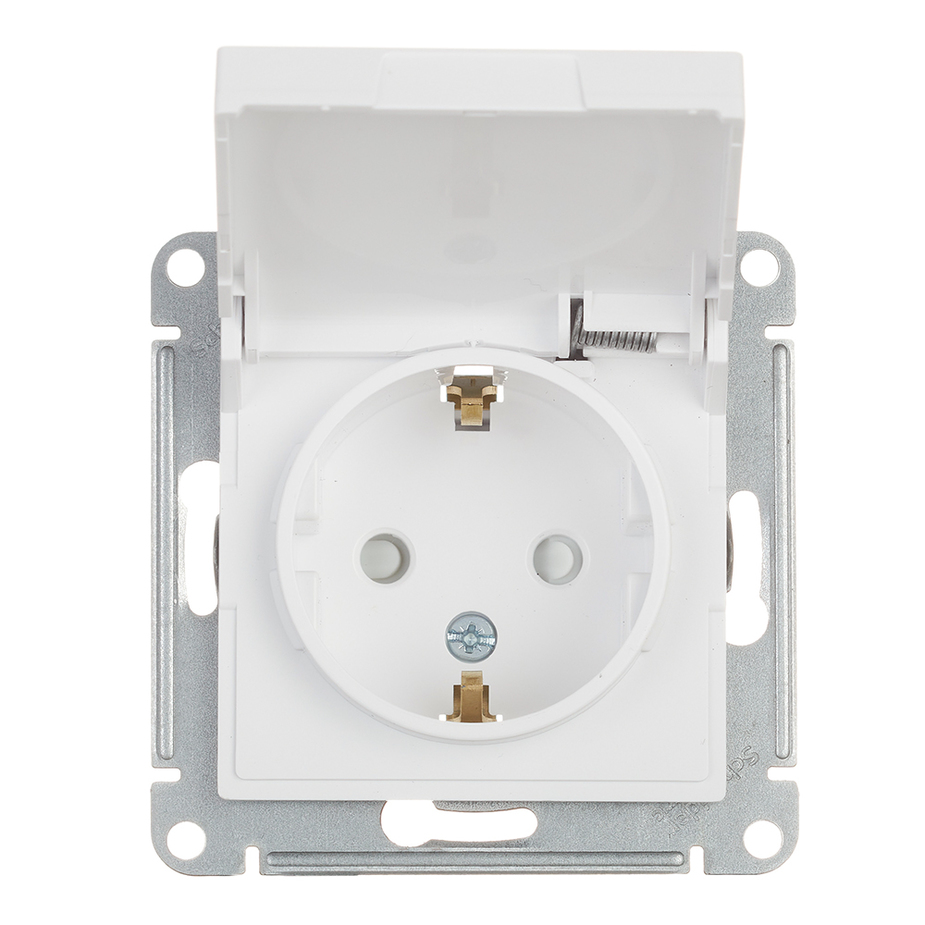 Розетка с з/к 16А с/у з/ш c крышкой б/рамки "ATLAS" белый …
